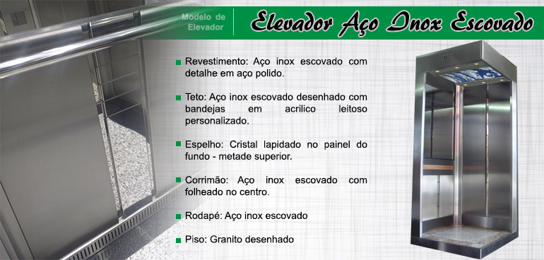 Revestimento: Aço inox escovado com detalhe em aço e painéis centrais em concavos.