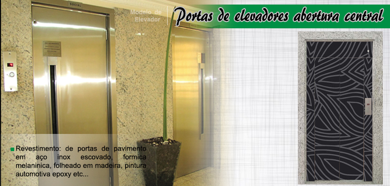 Revestimento: de portas de pavimento e batente abertura central, revestimento cimbalo preto, podendo ser revestido em aço inox escovado, folheado em madeira e pintura automotiva epoxy etc...