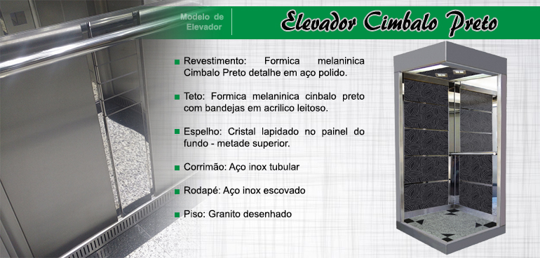Revestimento: Formica melaninica Cimbalo Preto com detalhes em aço polido.
