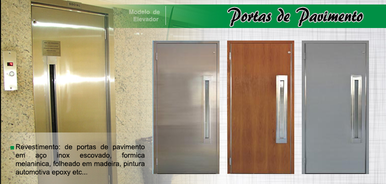 Revestimento: de portas de pavimento em aço inox escovado, formica melaninica, folheado em madeira, pintura automotiva epoxy etc...